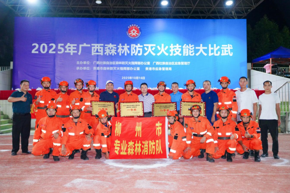 10月15—16日,2025年度自治区森林防救活技能大比武在贵港市落下帷幕。此次大比武由自治区森林防救活指挥部办公室、自治区应急办理厅主办,来自14个设区市共220余名专业森林消防救援队员同台竞技,而由三江县专业森林消防大队选拔引荐的队员不负众望,在“油锯拼装与切开”科目中技压群芳、勇夺冠军,更助力柳州市代表队获全区集体第二名的优异效果,为三江、为柳州赢得荣誉。