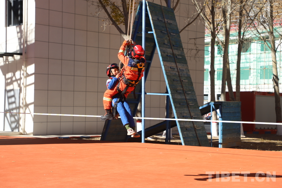 绳子实战救援技能观摩环节,在练习场上,消防员们身手强健,演示了绳子上升、下降、横渡、伤员转运等一系列高难度救援技巧。他们精准的操作、默契的合作以及在高空绳子上展现出的冷静与英勇,引来了师生们的阵阵惊呼和火热掌声。