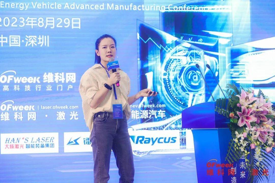 随后,华工激光深圳新能源分公司产品总监王熙泽进行了题为“激光焊接——汽车轻量化的关键工艺”的演讲。王熙泽首先介绍了激光焊接技术在新能源汽车行业的应用,展示公司深耕激光焊接领域取得的优异成果,随后详细的介绍了在汽车各个部件,华工激光激光焊接的各项先进技术。